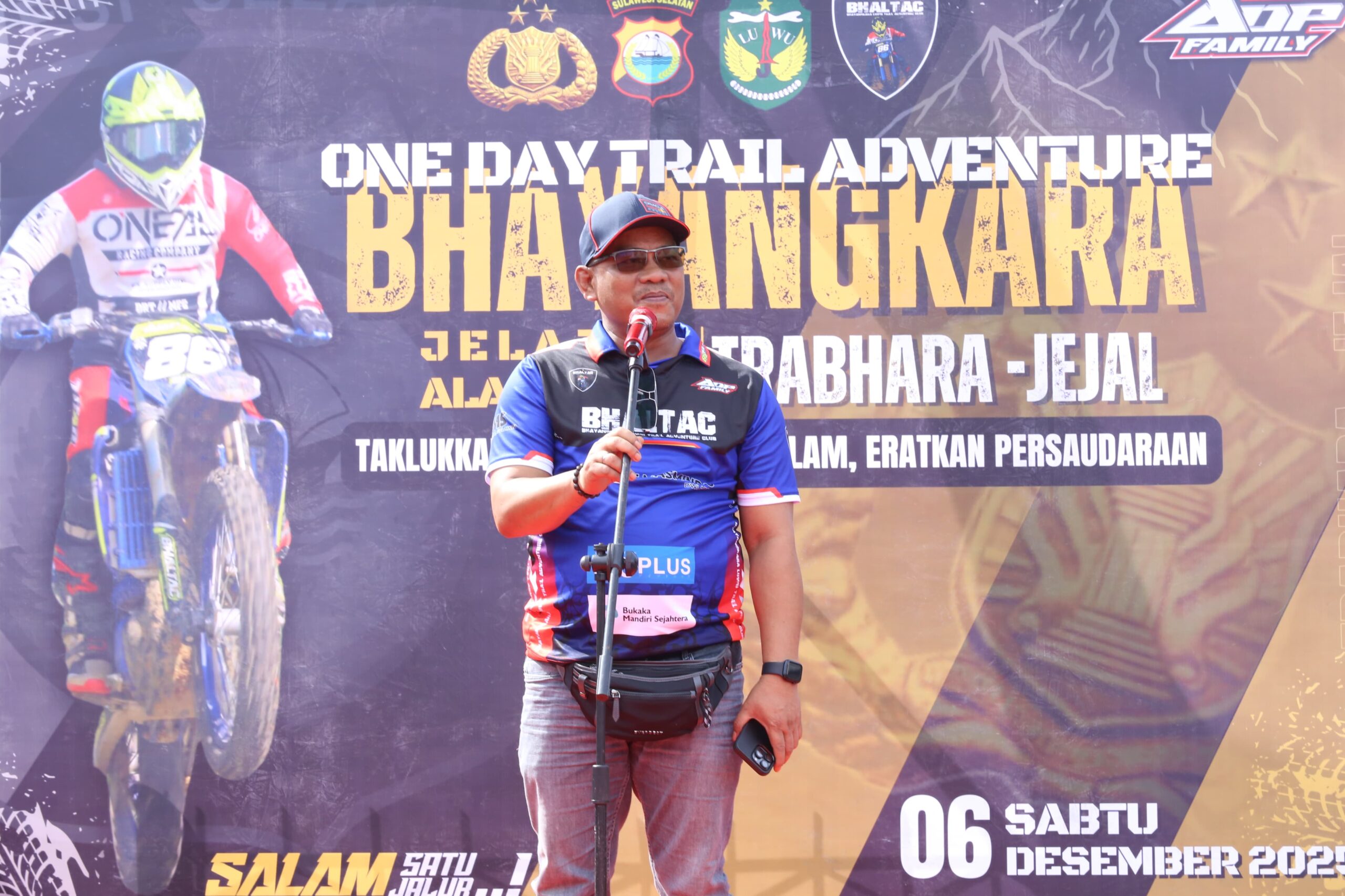 LUWU, Gerbongnews.co.id – Bupati Luwu, Patahudding, secara resmi membuka One Day Trail Adventure Bhayangkara 2025 di Lapangan Andi Djemma Belopa, Kabupaten Luwu, Sulawesi Selatan, Sabtu (6/12/2025). Acara ini dihadiri oleh sekitar 2.000 rider dari berbagai daerah.