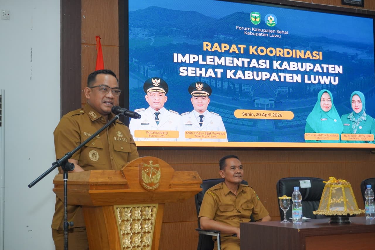 Penegasan itu disampaikan saat membuka Rapat Koordinasi Penguatan Forum dan Implementasi Kabupaten Sehat di Aula Rumah Jabatan Bupati Luwu, Senin (20/4/2026).