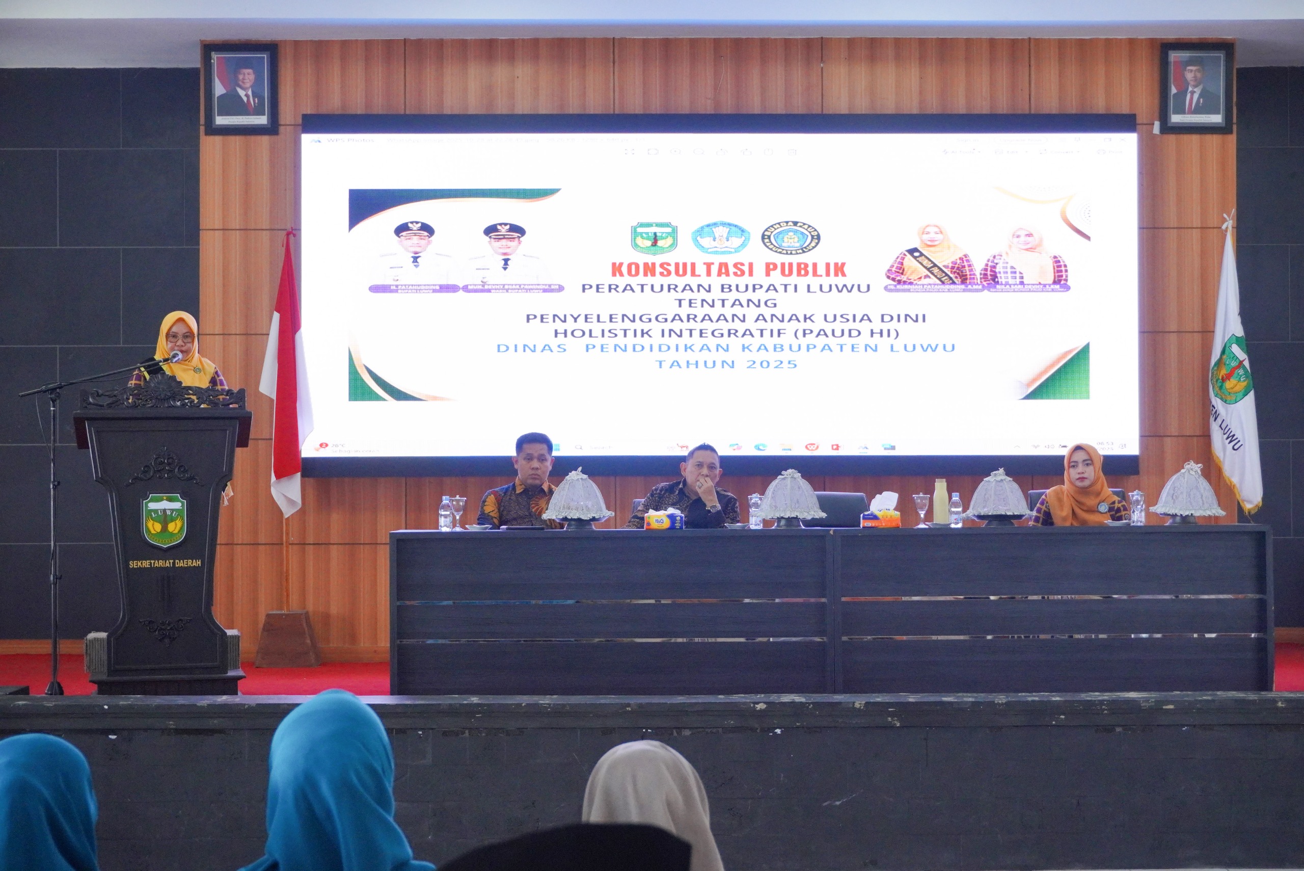Luwu, Gerbongnews.co.id| Pemerintah Kabupaten Luwu melalui Dinas Pendidikan menggelar Konsultasi Publik Penyelenggaraan Pendidikan Anak Usia Dini Holistik Integratif (PAUD HI) di Gedung Andi Kambo, Kamis (30/10/2025).