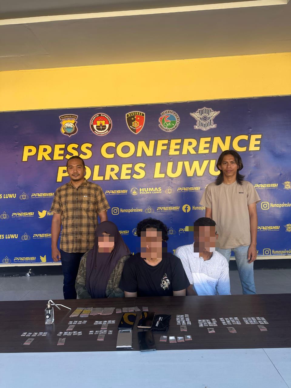 Dari tangan para pelaku, polisi mengamankan barang bukti berupa 59 sachet plastik kecil berisi kristal bening diduga sabu, 4 sachet plastik sedang, 3 unit ponsel, 1 timbangan digital, dan 1 set alat isap sabu (bong). Total keseluruhan barang bukti narkotika yang disita berjumlah 63 sachet.