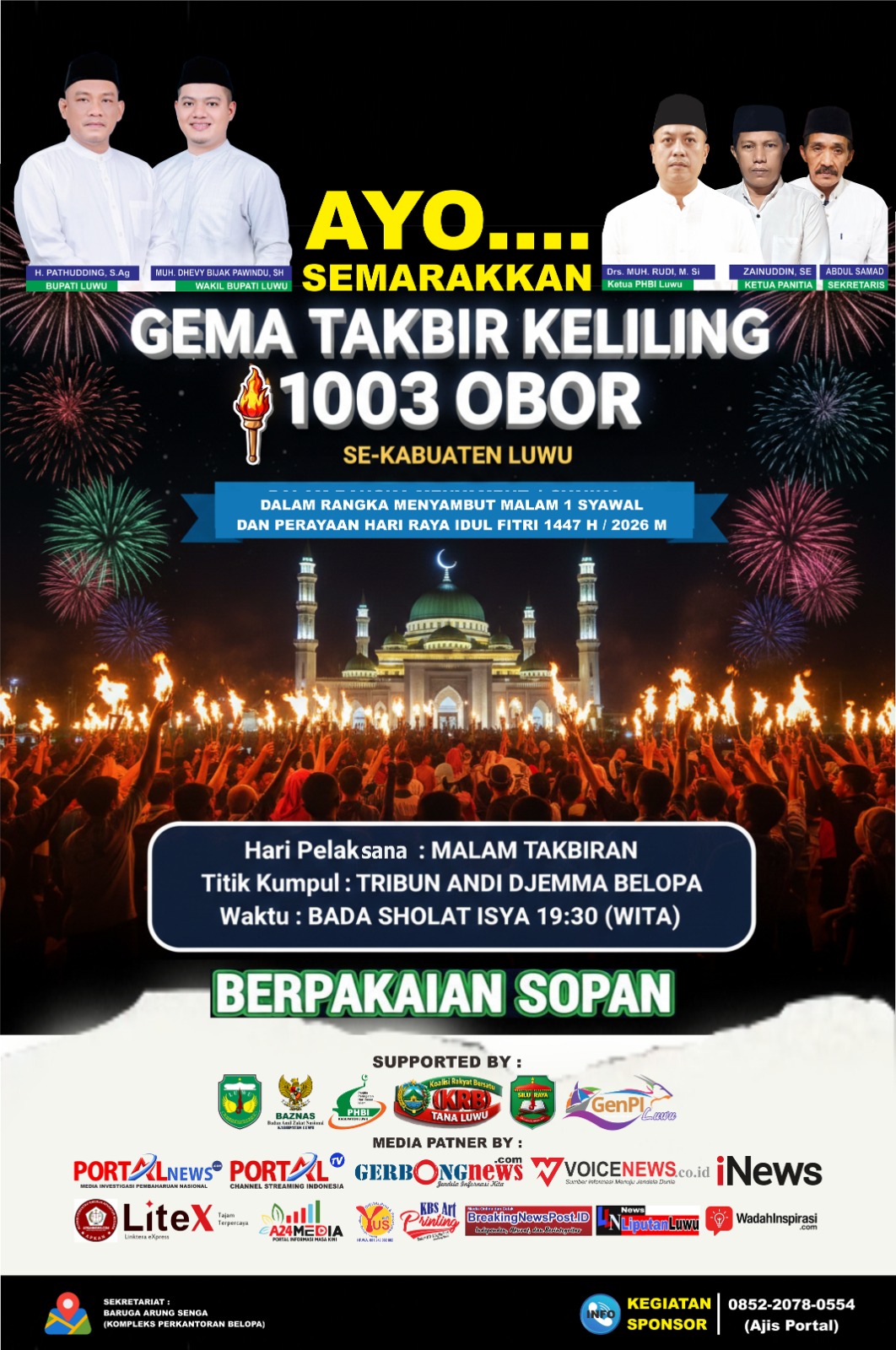 GerbongNews.co.id – Polemik mengenai sumber dana kegiatan Gema Takbir Keliling 1003 Obor se- Kabupaten Luwu Tahun 2026 akhirnya dijelaskan oleh Ketua Pelaksana kegiatan Zainuddin, SE sapaan Akrab Ajis Portal.